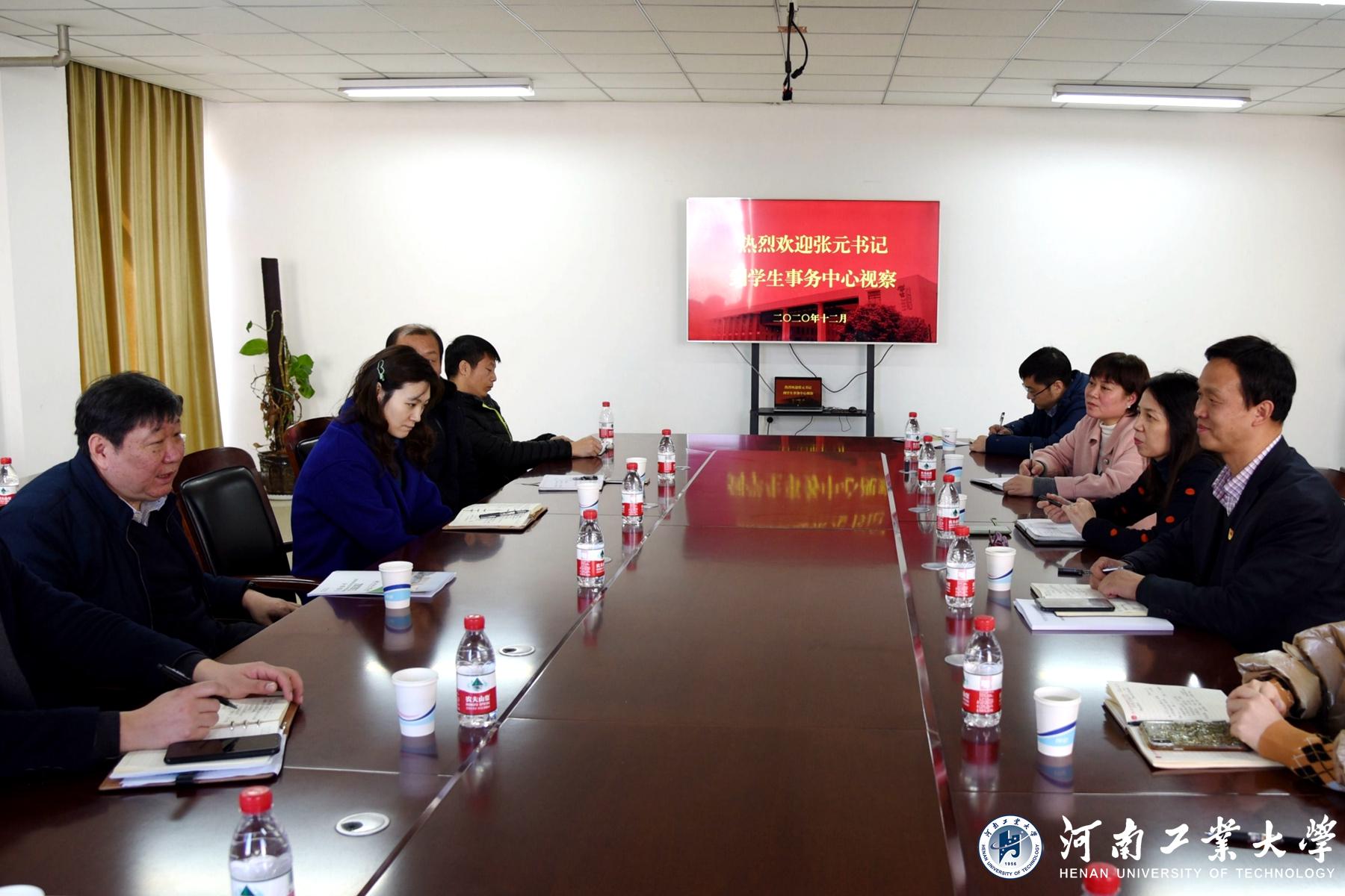 12月24日上午,校黨委書記張元深入學生事務中心調研指導工作。學工部、就業創業中心、校團委全體人員參加座談。