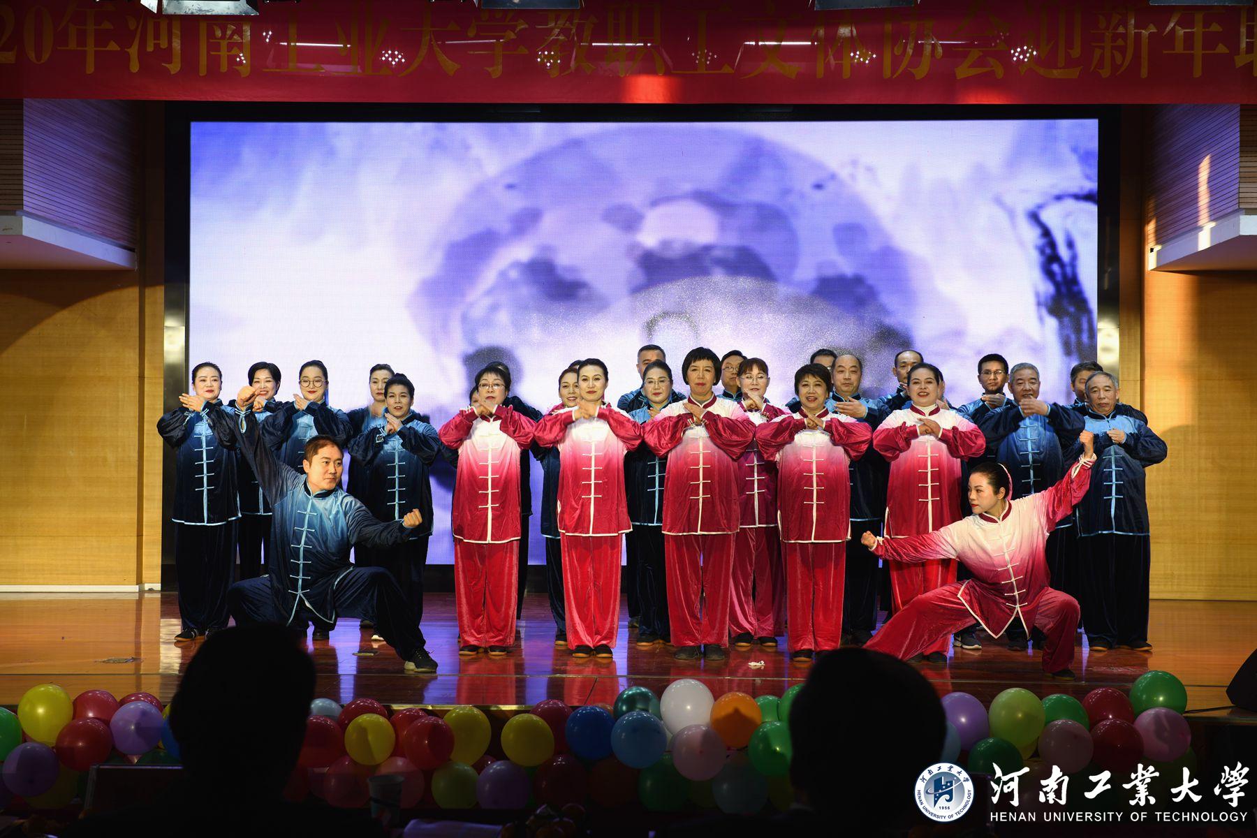 聯誼會上,各文體協會將一個個精心編排的節目精彩呈現,節目緊湊活潑、生動喜慶,教職工們載歌載舞歡聚一堂。由乒乓球協會帶來的健美操舞蹈《乒乓陣線聯盟》傳遞出青春的活力,光芒四射;足球協會的歌曲《朋友》唱出了綠茵場上大家共同拼搏的友誼;健身操協會帶來的舞蹈《乘風破浪》點燃了全場熱情,將歡樂氣氛推向了高潮;瑜伽協會的瑜伽表演《我愛你中國》用美麗之雅、生命之氣,體現出積極的生活態度;網球協會的詩歌朗誦《豫見網球》訴說了那一枚小小的綠色絨球像朋友一樣,陪伴他們歷經歲月、見證多彩;教工藝術團的小合唱《天邊、父親的草原母親的河》用悠揚的歌聲讓大家感受草原的風情,歌曲串燒《歲月、傳奇》用一群跳躍的音符為大家帶來一份快樂的心情;攝影協會的詩朗誦《與工大共奮進》用詩的語言表達了對學校的深情;籃球協會的動感時裝秀盡顯教職工的颯爽英姿;書畫協會現場揮毫,把一副副寄托著美好期愿的春聯送給大家;羽毛球協會的詩朗誦與合唱《岳陽樓記·山丹丹花開紅艷艷》讓大家重溫經典,不忘初心;太極拳協會的太極八段錦《鴻雁》展現了剛柔相濟的非物質文化遺產的魅力;排球協會的《青春律動排球操》節奏明快、韻律十足。