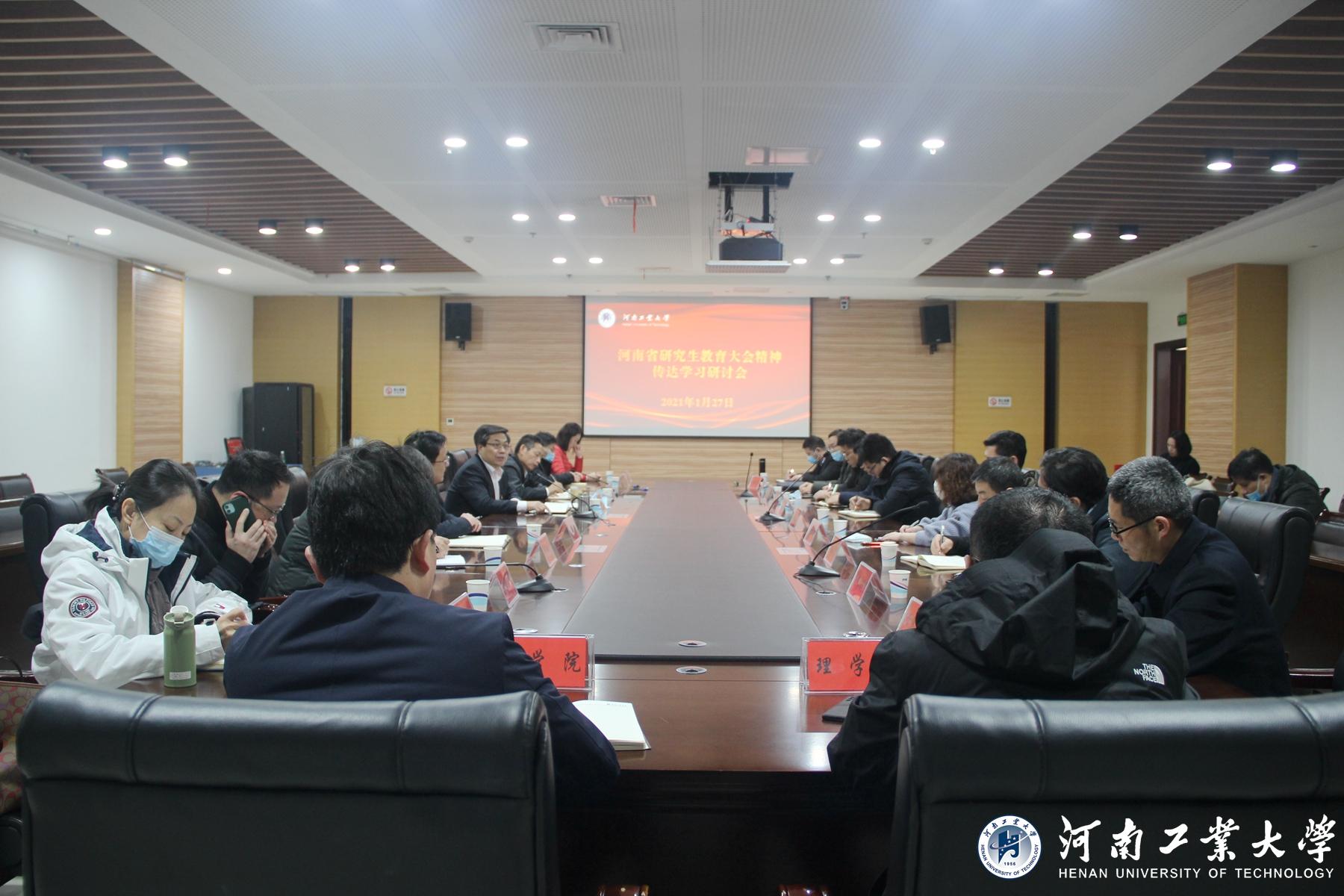 會議還組織學習了《河南省學位與研究生教育提升行動計(2021—2025年)(征求意見稿)》,對河南省在“十四五”期間將實施的立德樹人固本行動等十大行動計劃進行了研討。與會人員紛紛表示,通過學習河南省研究生教育大會精神,自己深受鼓舞,對研究生教育改革的意義、目標和途徑有了更深刻的理解,更加清晰地認識到在決勝全面建成小康社會、決戰脫貧攻堅的基礎上邁向建設社會主義現代化國家新征程中所肩負的責任和使命;今后將進一步深入貫徹習近平總書記關于研究生教育工作的重要指示和李克強總理的批示要求,學習貫徹河南省研究生教育會議精神,深刻把握研究生教育面臨的新形勢新任務,積極參與和謀劃好學科建設和研究生教育十四五發展規劃,努力培養具有理想信念、愛國情操、奮斗精神、專業能力的新時代研究生,全面推動研究生教育高質量、內涵式發展,為辦有特色高水平工業大學做出新的貢獻,為新時代中原更加出彩提供堅實的高層次人才支撐。