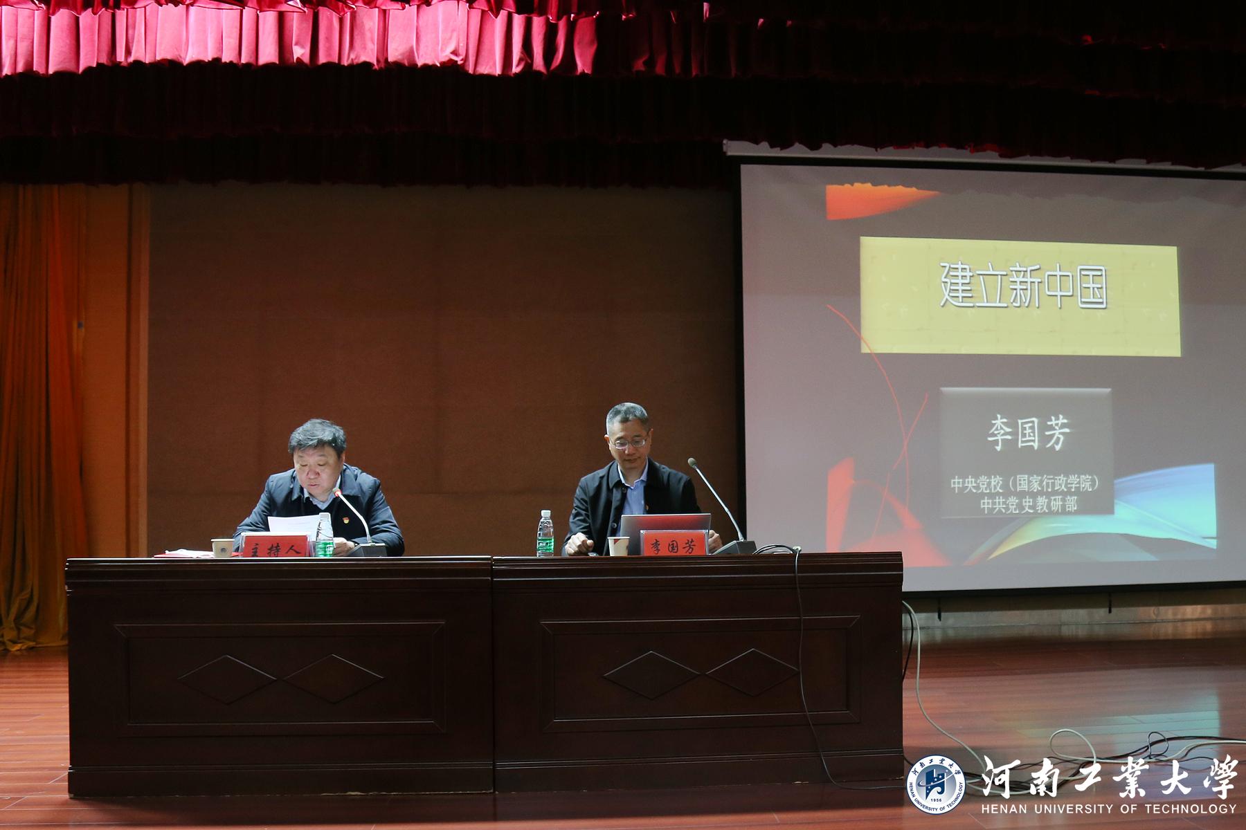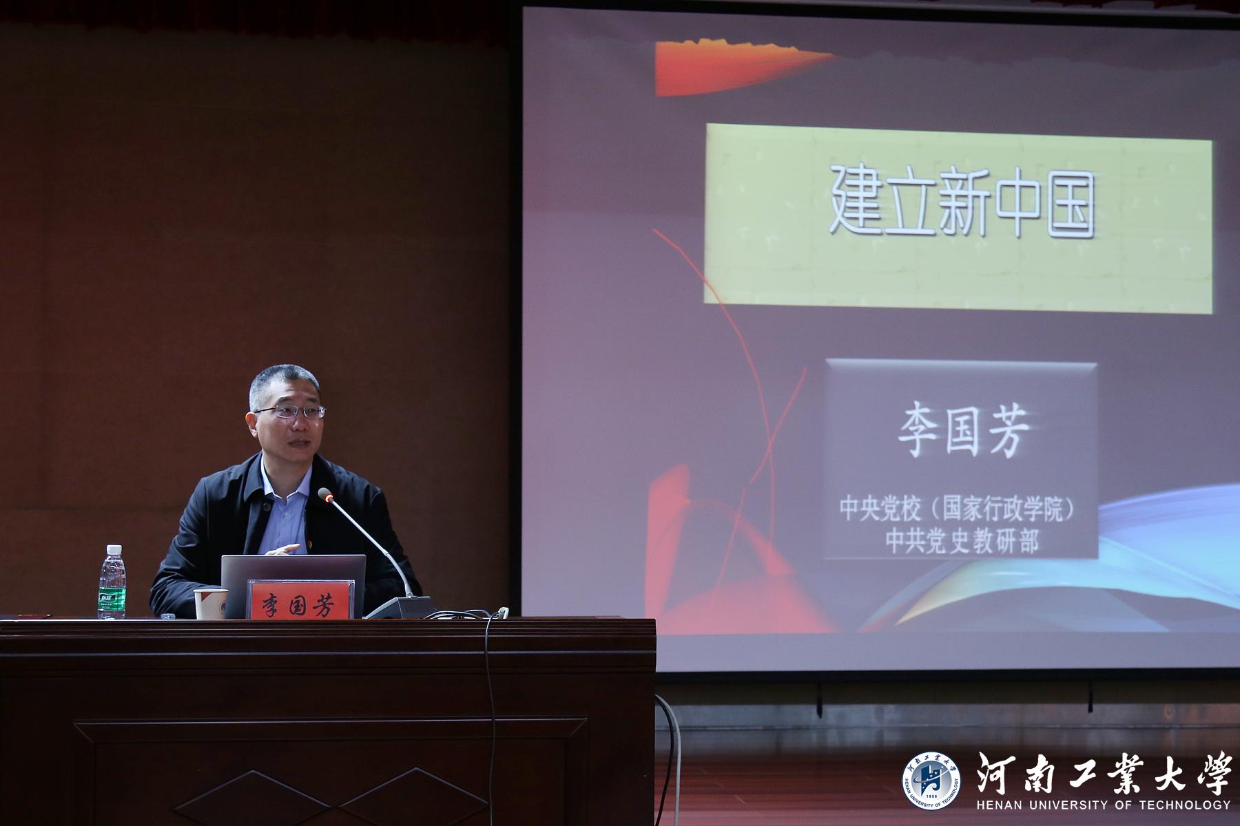 3月23日,河南工業大學校黨委理論學習中心組(擴大)學習會暨黨史學習教育專題輔導報告會,在學術報告中心D303報告廳舉行。中共中央黨校(國家行政學院)黨史部教研室主任李國芳教授應邀作題為“建立新中國”的專題輔導報告。校領導,校黨委理論學習中心組全體成員,全體中層干部,教工、學生黨支部書記代表,離退休黨員、教工黨員和學生黨員代表參加了輔導報告會。會議由校黨委書記張元主持。