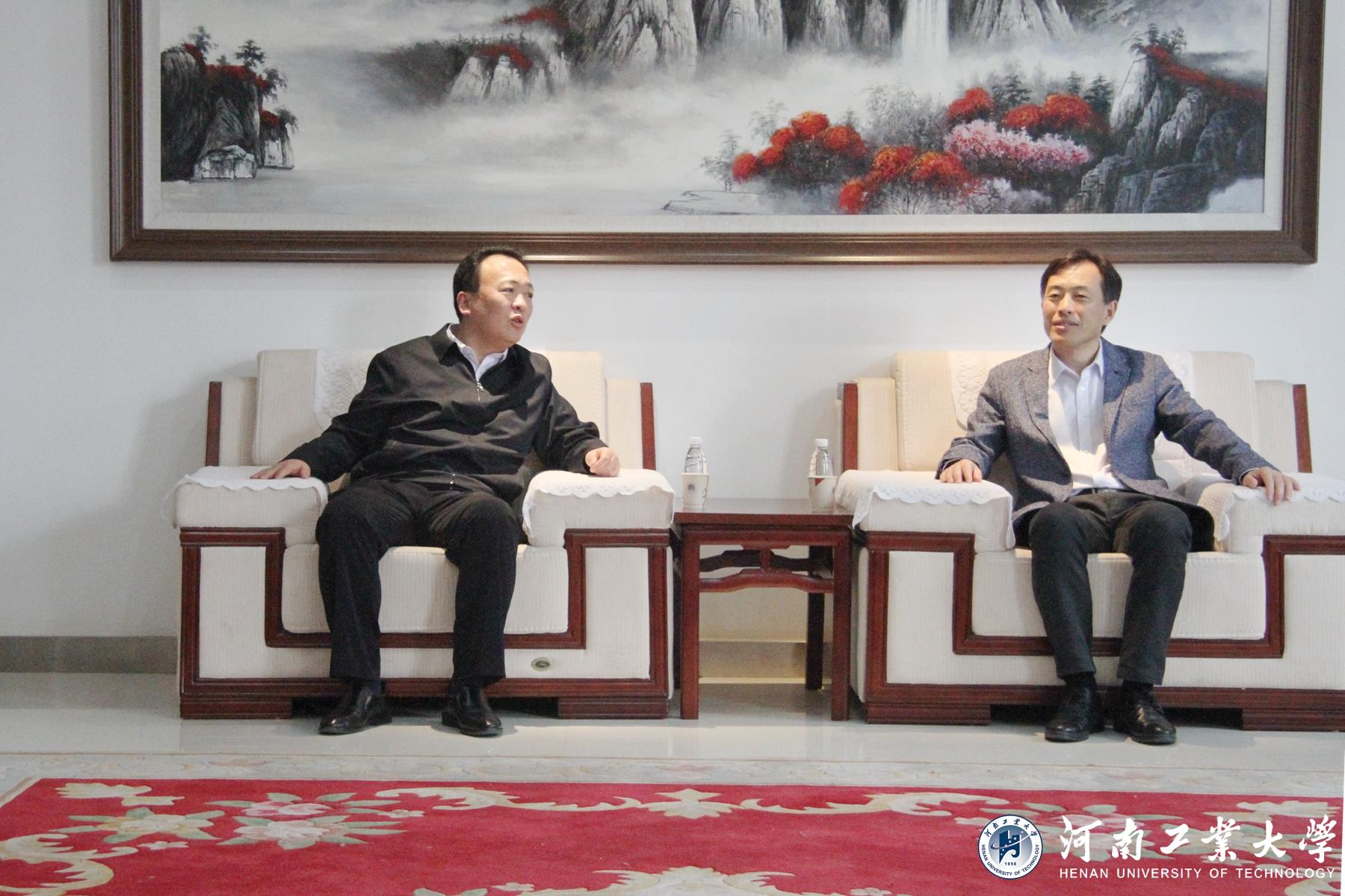 4月23日,國家糧食和物資儲備局河南局主要負責人李強,人事處處長李春平、副處長張巍一行到我校考察會商工作。校長李成偉、副校長李煥鋒在辦公樓A617會見了來賓并進行座談,校長辦公室等部門負責同志參加了會談。