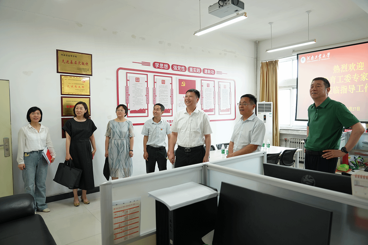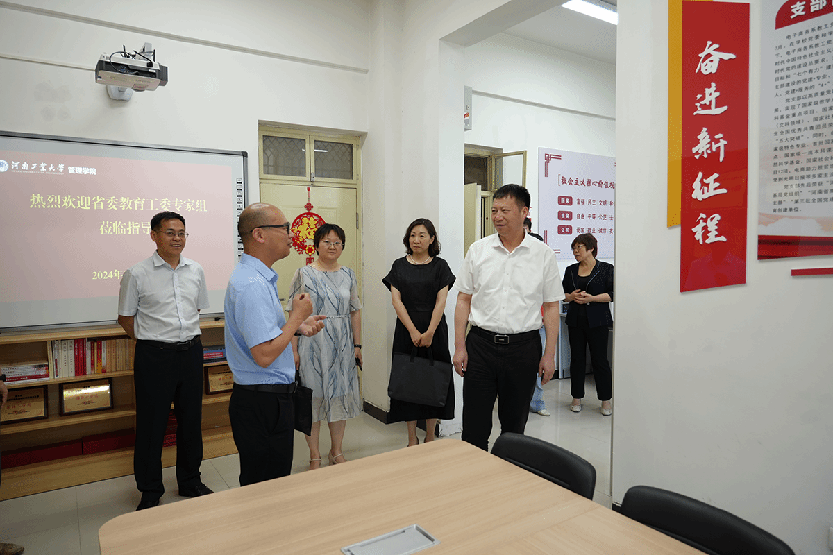 根據教育部關于開展第三批新時代高校黨建示范創建和質量創優工作驗收的通知精神和省委教育工委統一安排,5月27日,省委教育工委考核驗收專家組組長、鄭州輕工業大學黨委副書記楊新宇,河南財經政法大學黨委組織部副部長李袆和中原工學院黨委組織部副部長趙茜一行三人來校,對我校第三批“全國樣板黨支部”進行實地驗收,對首批“全省高校黨建工作標桿院系”、“雙帶頭人”教師黨支部書記工作室進行中期考核。校黨委副書記、工會主席周相寅陪同專家組實地考核,黨委組織部及各創建單位負責人參加了考核驗收。