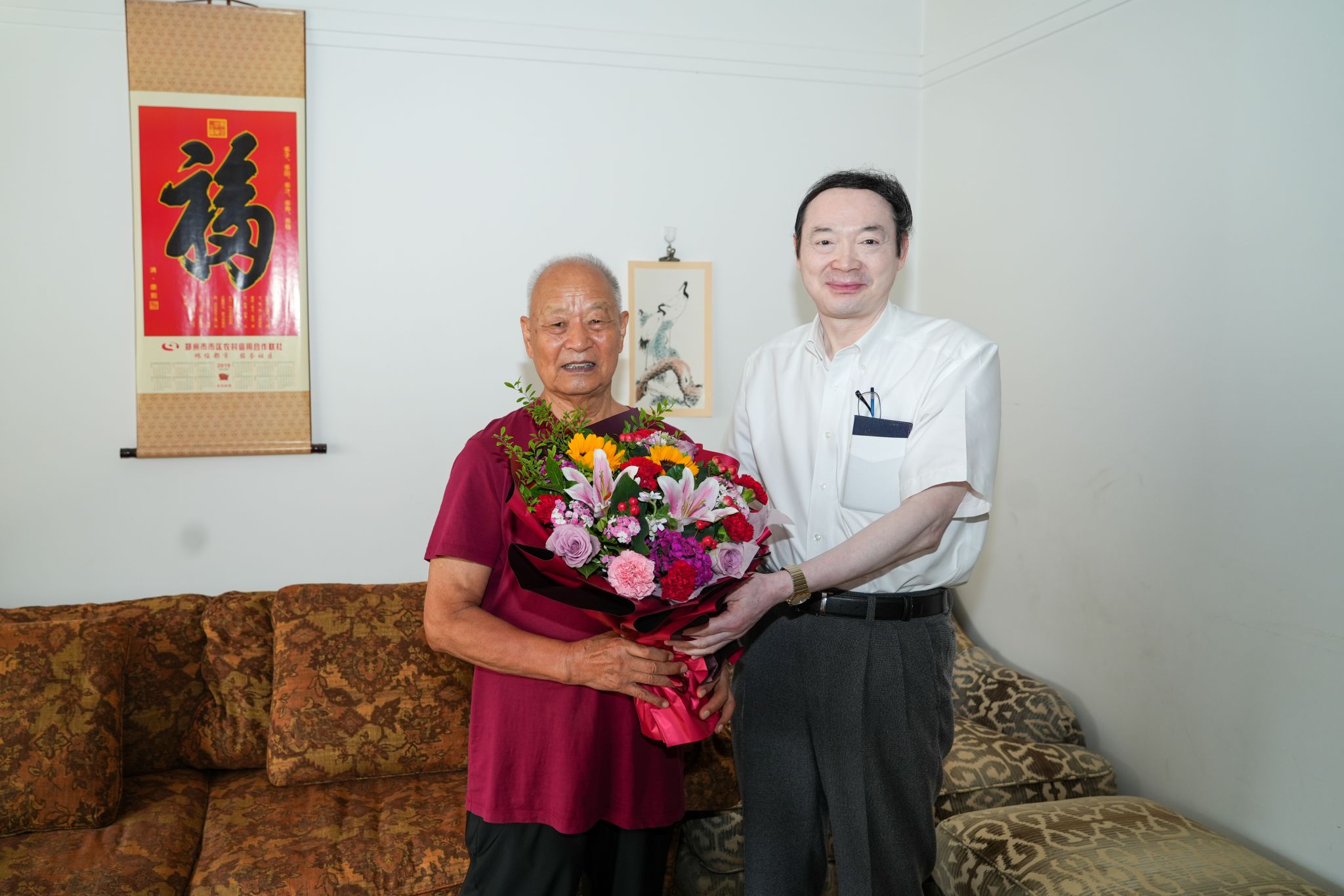 芳華無悔育桃李,銀齡不輟鑄師魂。在我國第40個教師節來臨之際,為表達對離退休教師的關懷和敬意,進一步弘揚尊師重道的傳統美德,9月9日上午,校黨委書記劉志軍,校長吳智深,校黨委副書記、工會主席周相寅在黨委辦公室、校長辦公室和離退休工作處等部門負責同志陪同下分別到路純明、陳明雅、趙學敬等離退休老教師代表家中看望慰問,向他們及全校廣大離退休老同志致以誠摯的問候和節日的祝福。