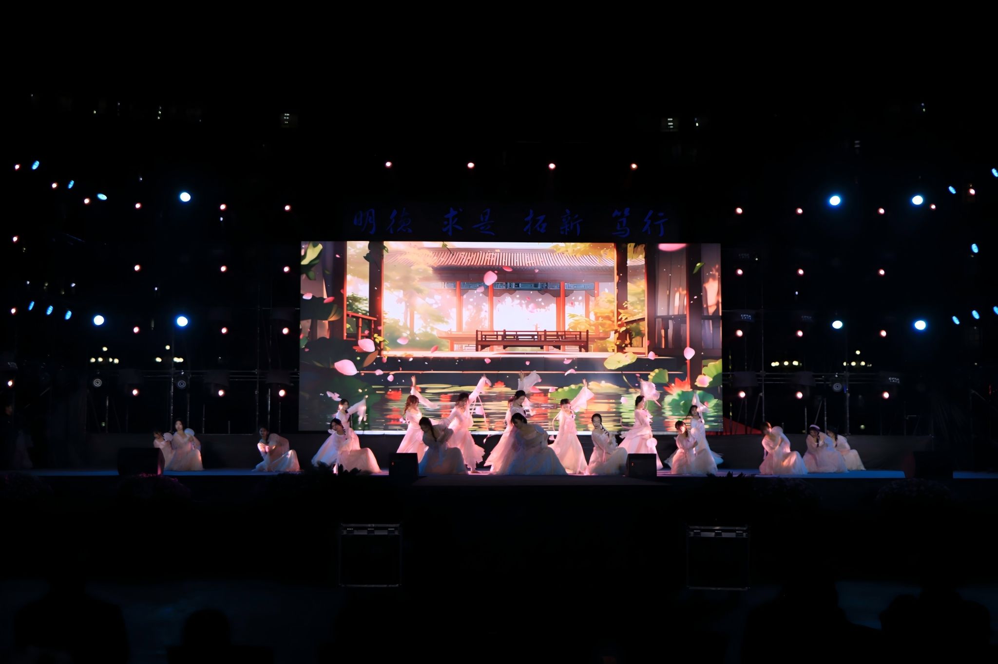 “同心聚力綻新彩”聚焦協作與創新,展現多元文化魅力。管弦樂《濯海令》以恢弘旋律描繪了“百川歸海”的壯闊意境;《阿刁》《青春舞曲》《相思瑤》等歌曲聯唱,展現了民族文化的魅力與奮斗活力;古典舞《清庭云月》以優雅舞步詮釋傳統美學;創意走秀《四時序》則將大學四年的成長歷程巧妙融入四季變換的詩意敘事之中。