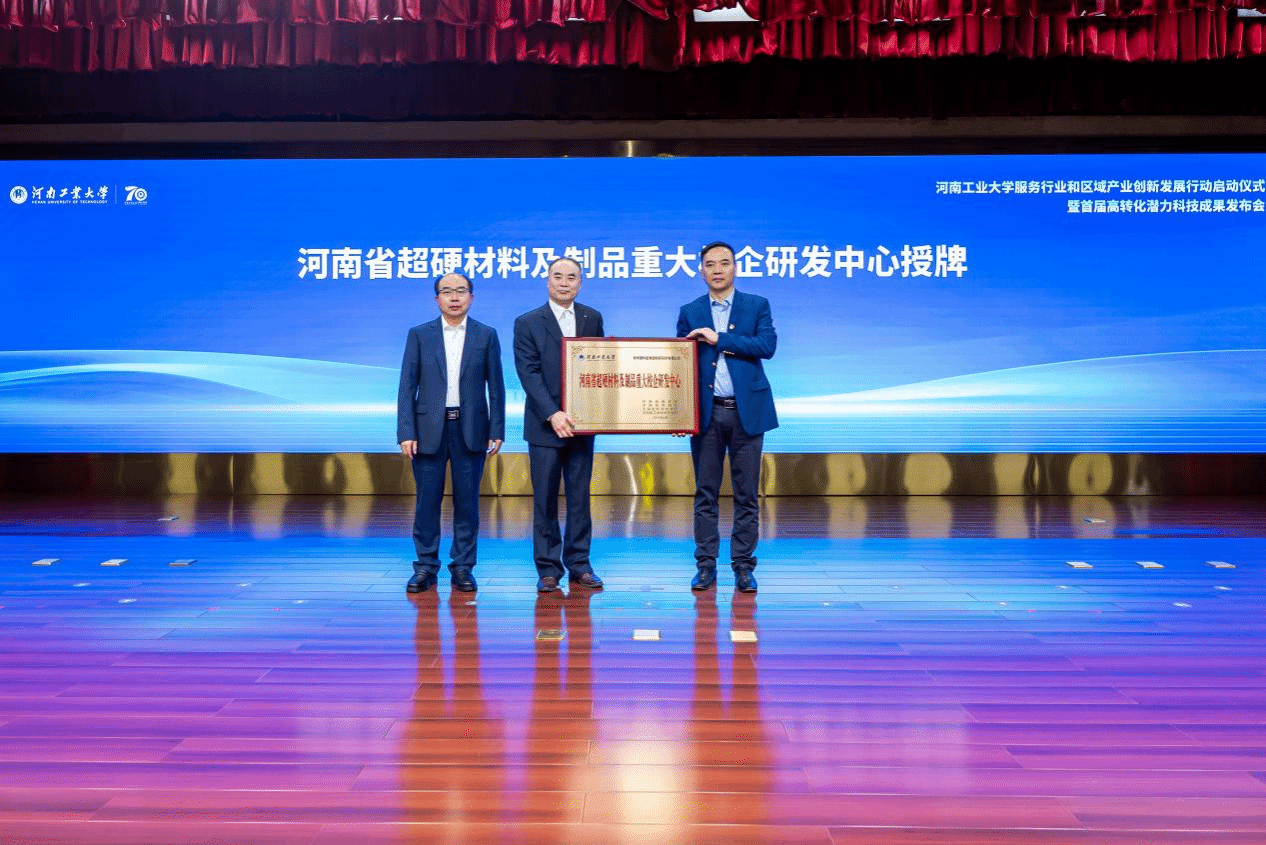 活動期間,還舉行了“河南省超硬材料及制品重大校企研發中心”以及糧食加工和儲運智能化裝備、未來谷物、先進材料等9家新入駐學校科創大樓的校企研發中心集體授牌儀式。