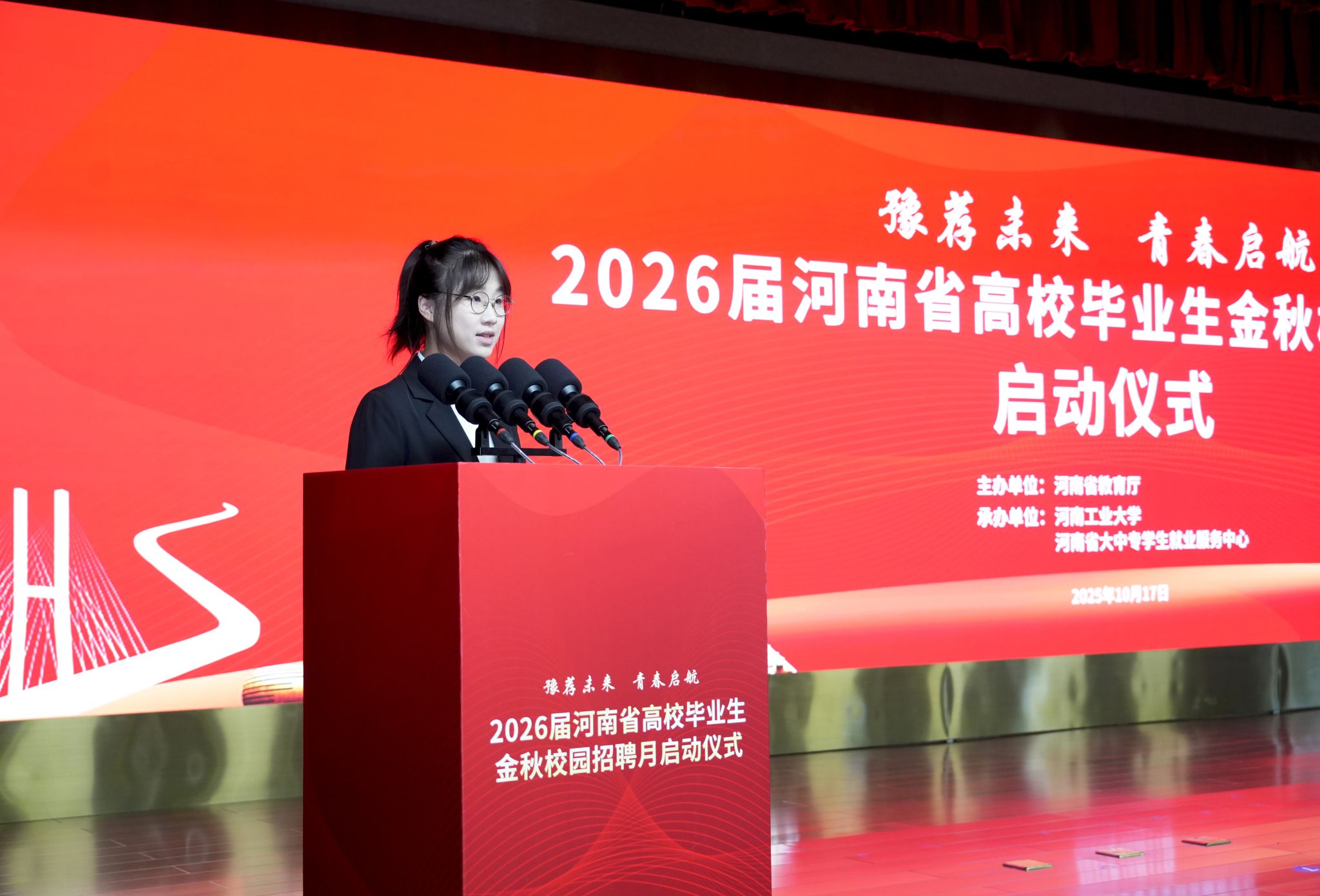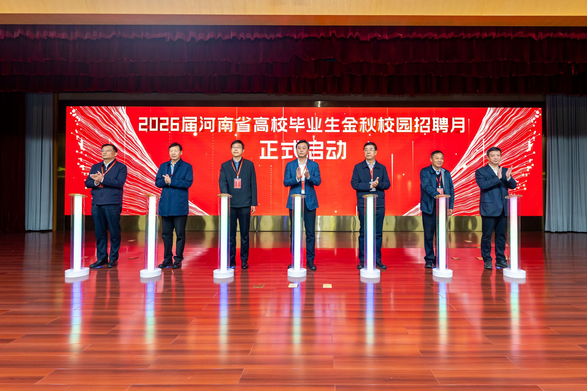 10月17日,2026屆河南省高校畢業(yè)生金秋校園招聘月啟動儀式暨秋季校園雙選會在我校舉辦。省教育廳、省發(fā)改委、省工信廳、省人社廳、省衛(wèi)健委及我校領(lǐng)導(dǎo)出席啟動儀式。省大中專學(xué)生就業(yè)服務(wù)中心相關(guān)負(fù)責(zé)同志,省人才交流中心相關(guān)負(fù)責(zé)同志,部分高校就業(yè)工作分管負(fù)責(zé)同志,省級分市場牽頭高校、駐鄭各普通高校就業(yè)部門負(fù)責(zé)同志,部分高校就業(yè)指導(dǎo)教研室主任、就業(yè)骨干教師,廣大用人單位、畢業(yè)生代表參加啟動儀式及相關(guān)活動。啟動儀式由校黨委副書記黃澤峰主持。