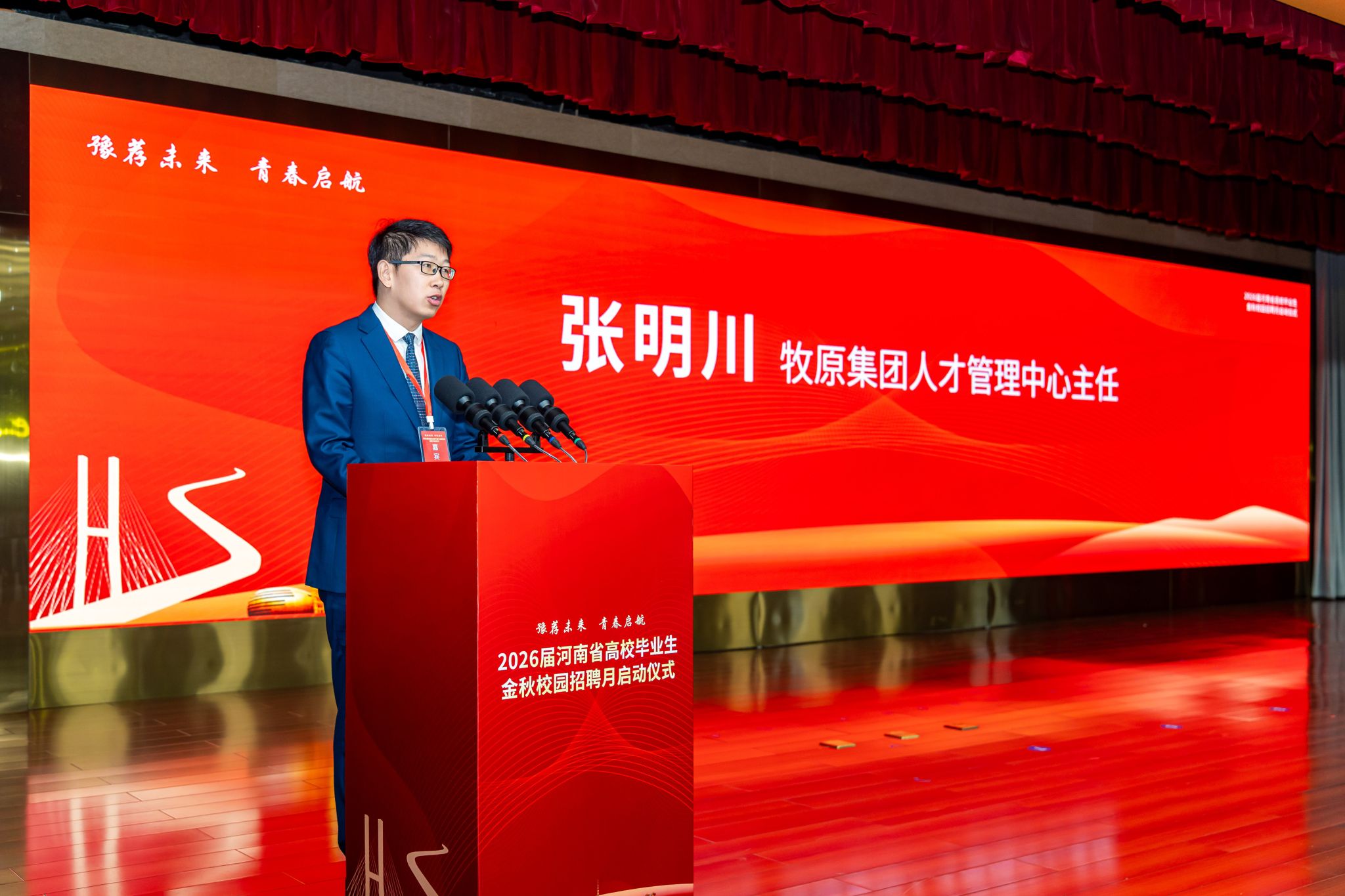 牧原集團(tuán)人才管理中心主任張明川作為用人單位代表發(fā)言;我校材料科學(xué)與工程學(xué)院董清妍同學(xué)作為2026屆畢業(yè)生代表發(fā)言。