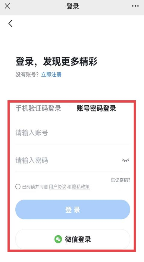 2.登錄步驟:點(diǎn)擊“我的 ”頁(yè)面,可選擇使用手機(jī)號(hào)或微信賬號(hào)進(jìn)行注冊(cè)登錄;