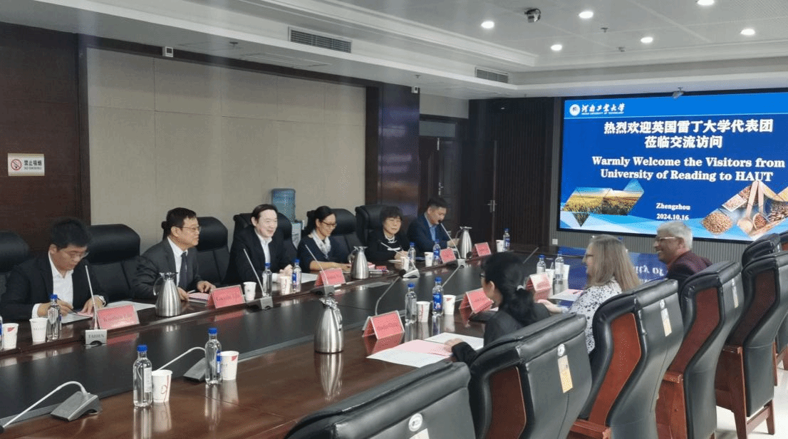 On the morning of October 16,2024, a delegation from the University of Reading, led by Professor Colette Fagan, visited our university. Wu Zhishen,President of HAUT and officials from relevant departments and units such as the Graduate School, International Exchange & Cooperation Office, School of Grain Oil and Food Sciences, School of Biotechnology, and School of International Education attended the meeting. It was hosted by Liu Guoshi, Director of the International Exchange & Cooperation Office.